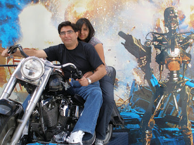 Aquí están mis tesoros en los Estudios Universal, sobre la moto de Terminator.